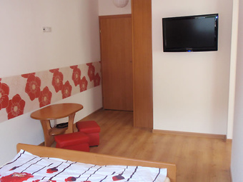 Mamy Państwu do zaproponowania pobyt w zadbanych pokojach 2, 3 i 4 - osobowych, przytulnie umeblowanych, wyposażonych w łazienkę z natryskiem, umywalkę i WC, TV LCD 32, lodówkę i internet.